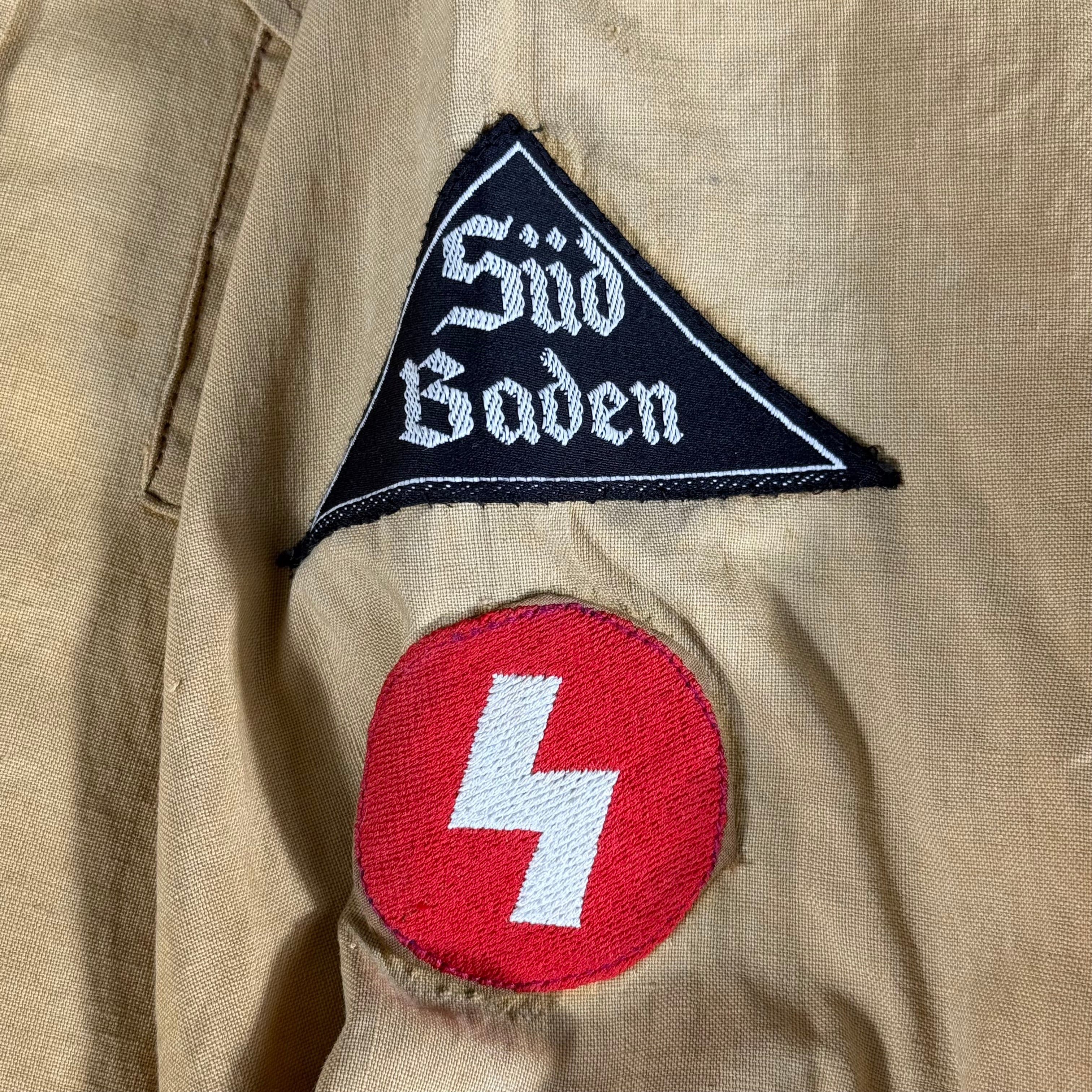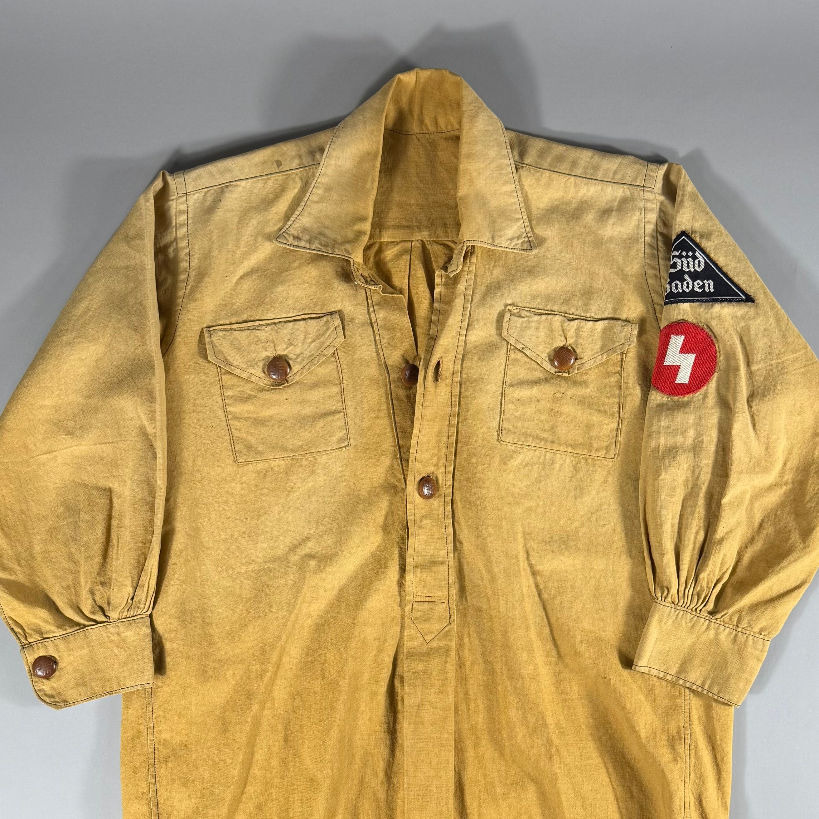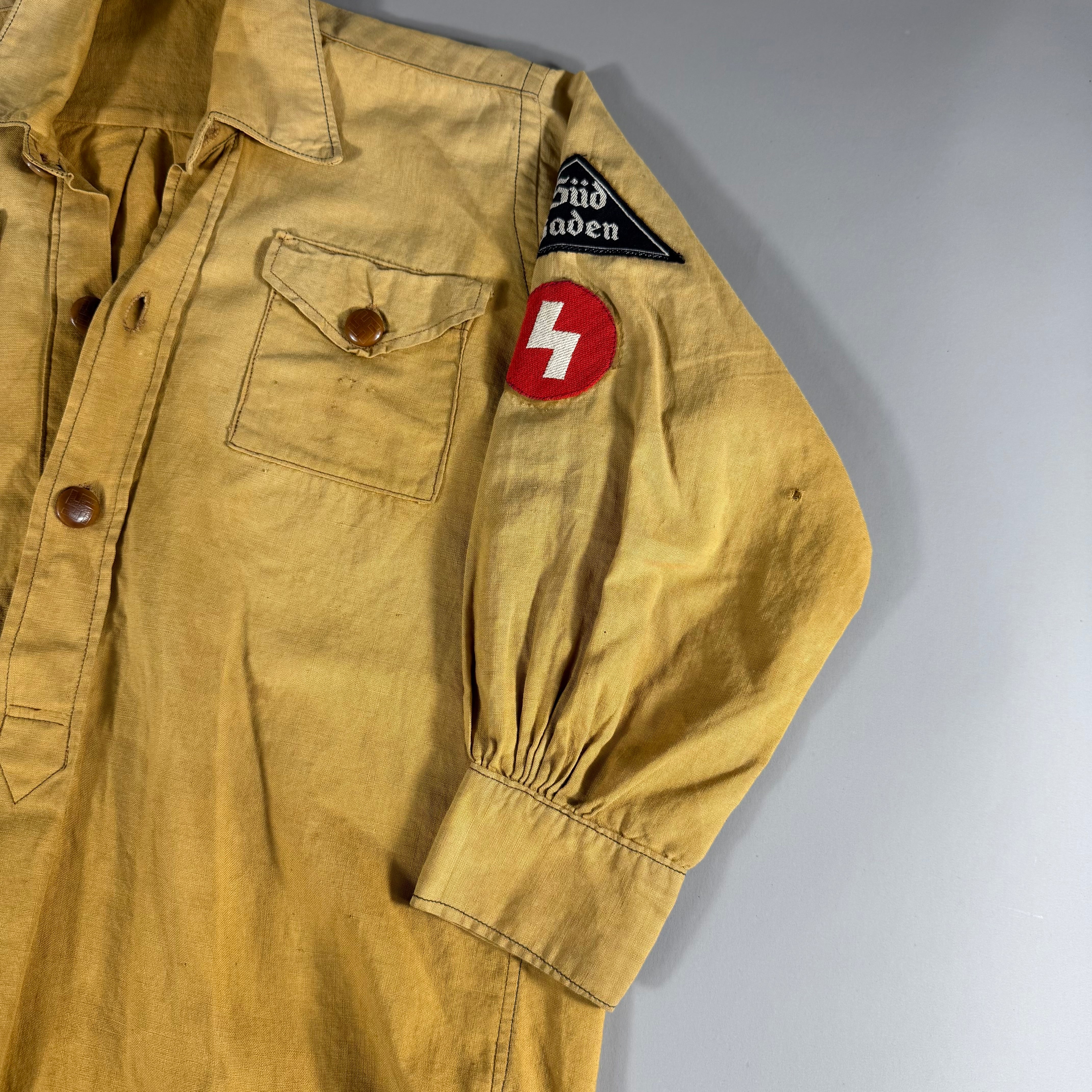 Original Pre World War Two German Deutsche Jungvolk (DJ) or Jungmädelgruppe (JM) Service Shirt with Süd Baden Triangle and DJ Rune.