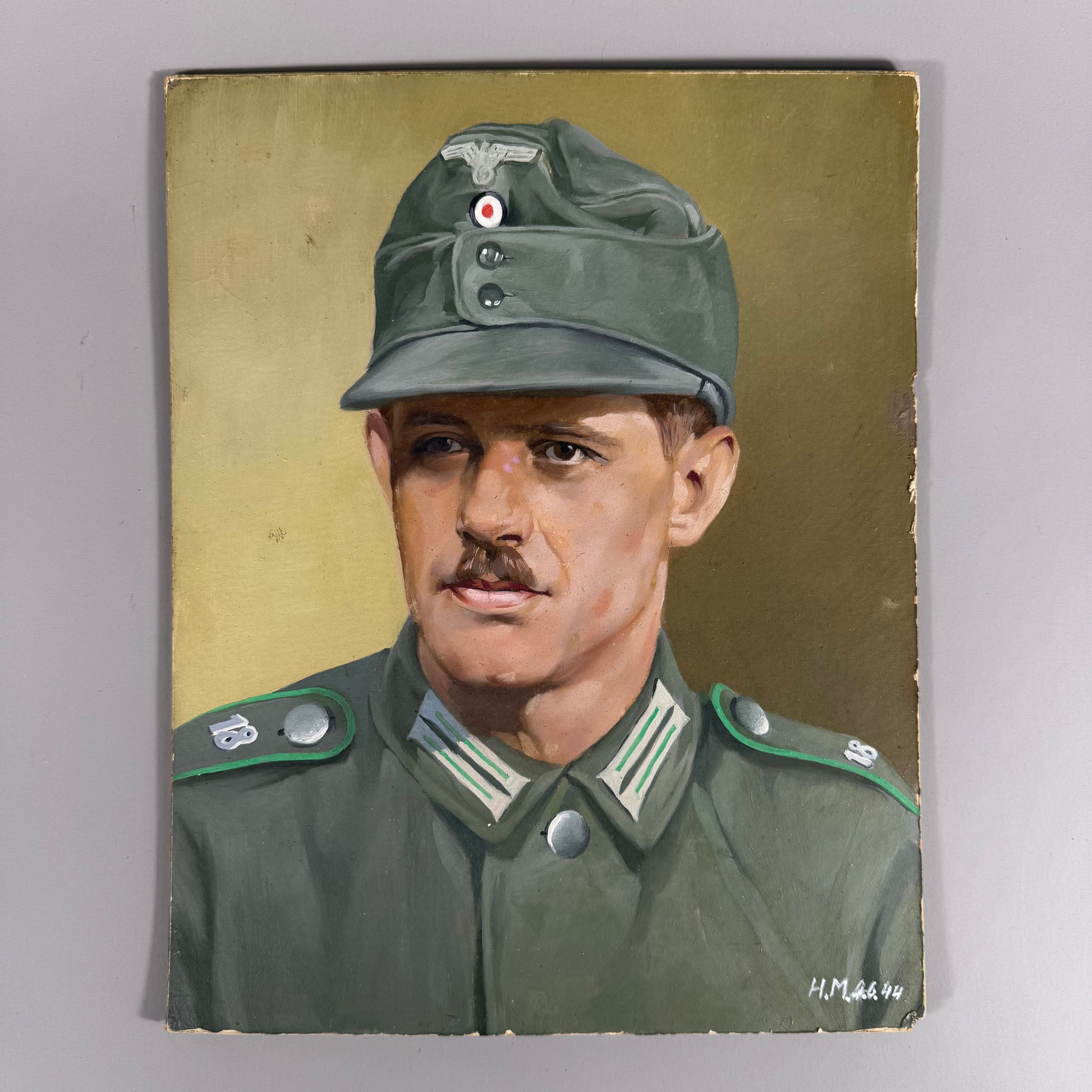 Original World War Two German Polizei Non Commissioned Officer’s Personal Portrait Painting Signed and Dated 1944.