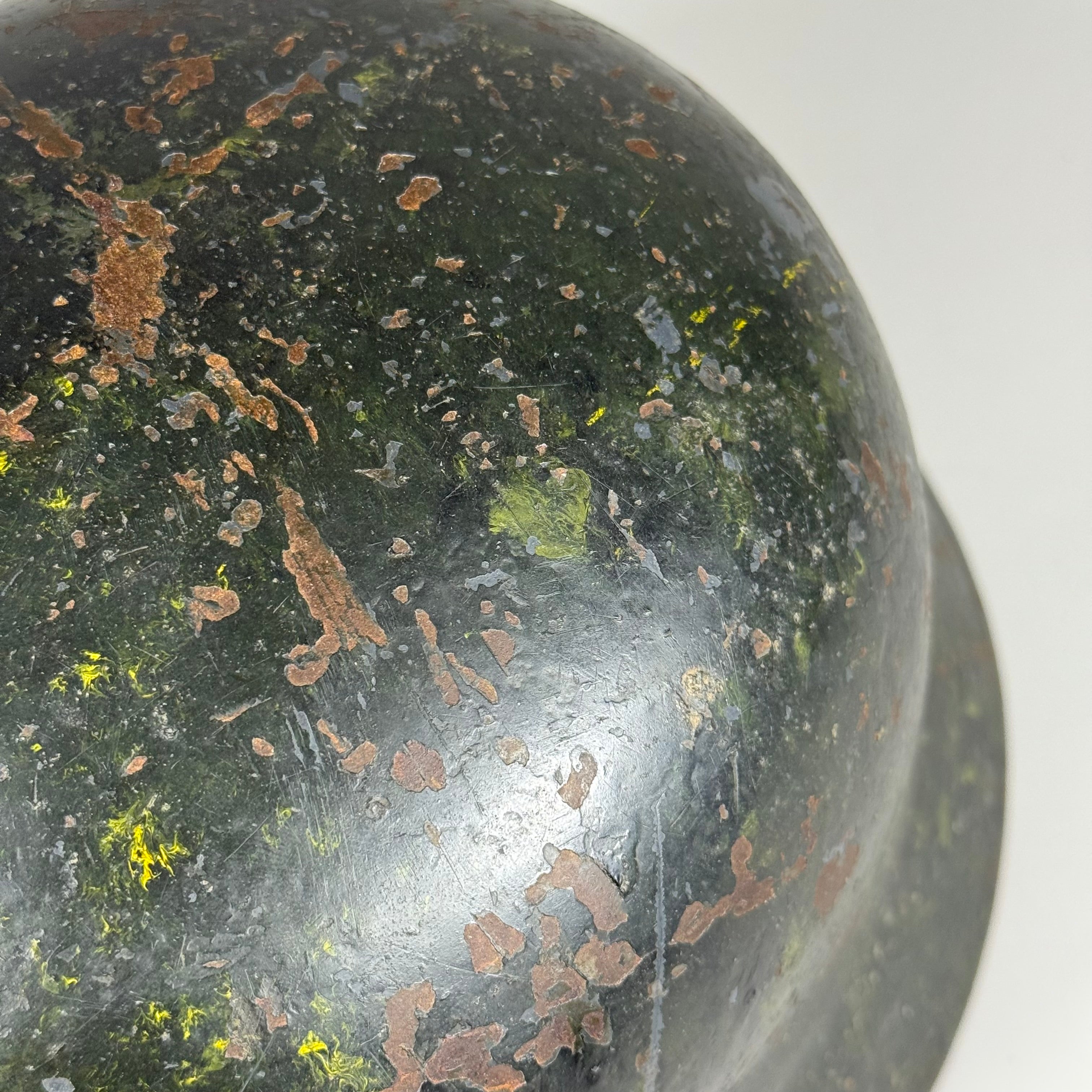 Original World War Two German Luftwaffe M35 SE66 Double Decal Dark Green Overpaint Ex-Wire Helmet.