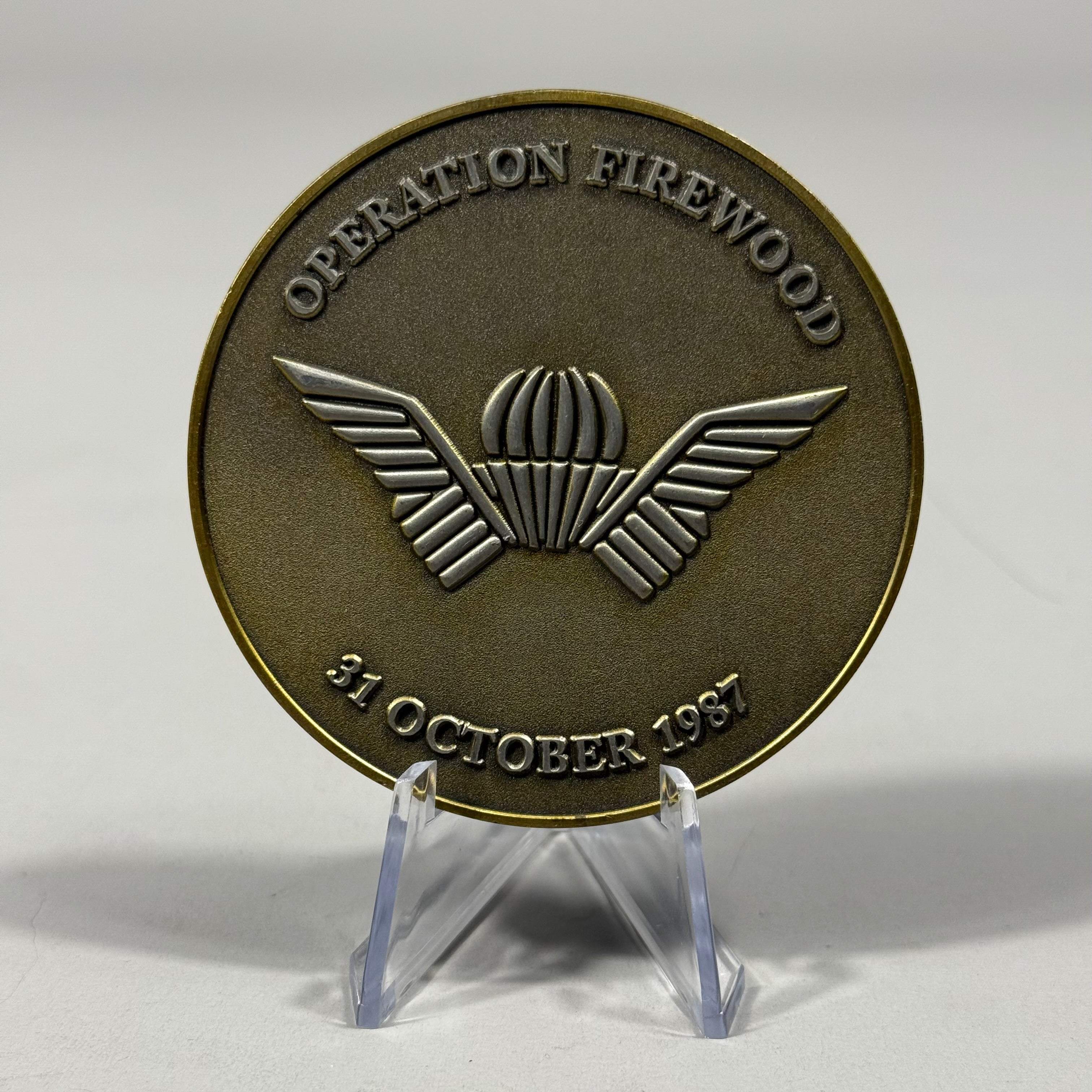 Original Border War South African Defence Force 5 RECCE Attributed Operation FireWood 31 October 1987 Challenge Coin. Display stand included.