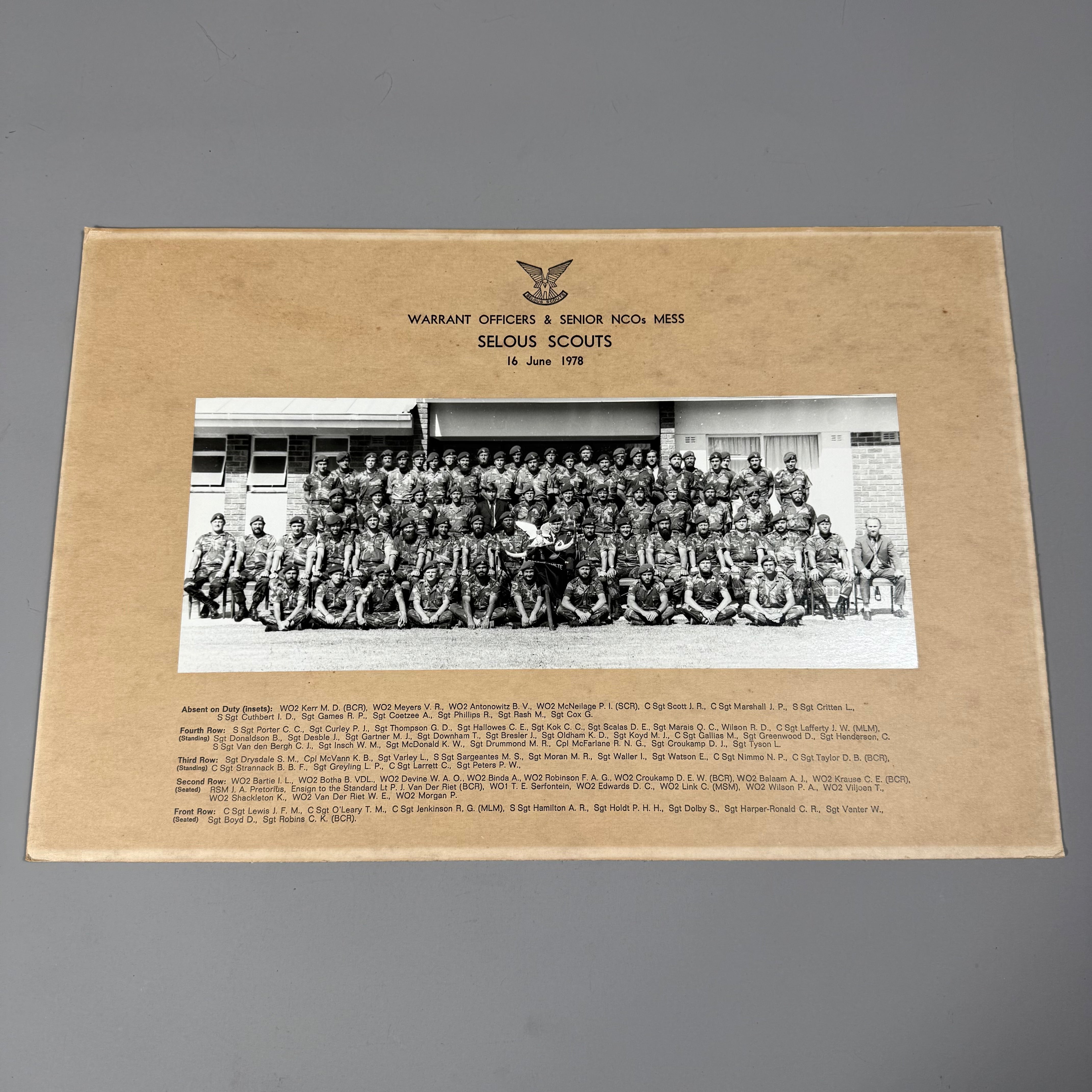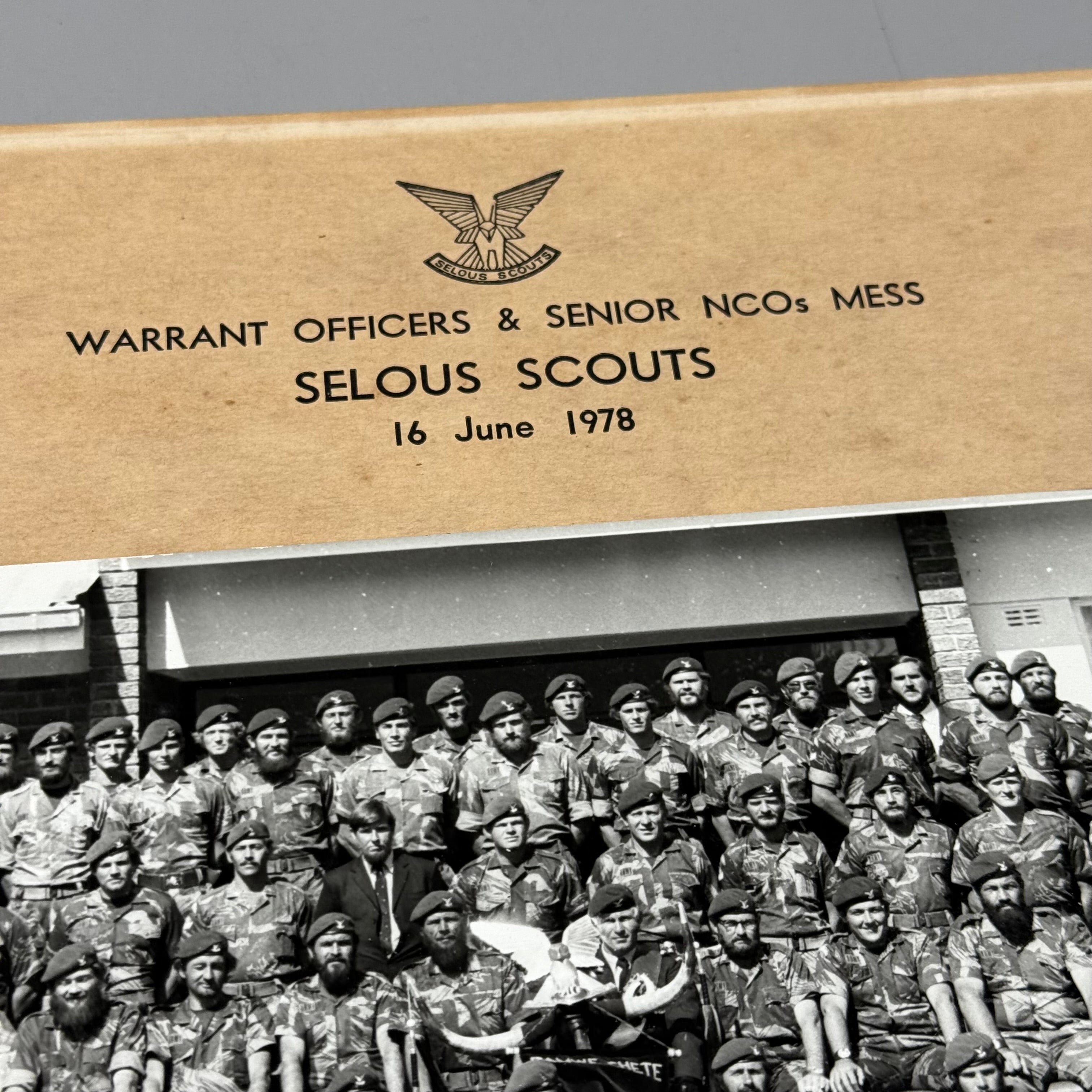 Original Bush War Rhodesian Selous Scouts Attributed Warrant Officer’s and Senior NCO’s Mess 16 June 1978 Large Panoramic Photo.