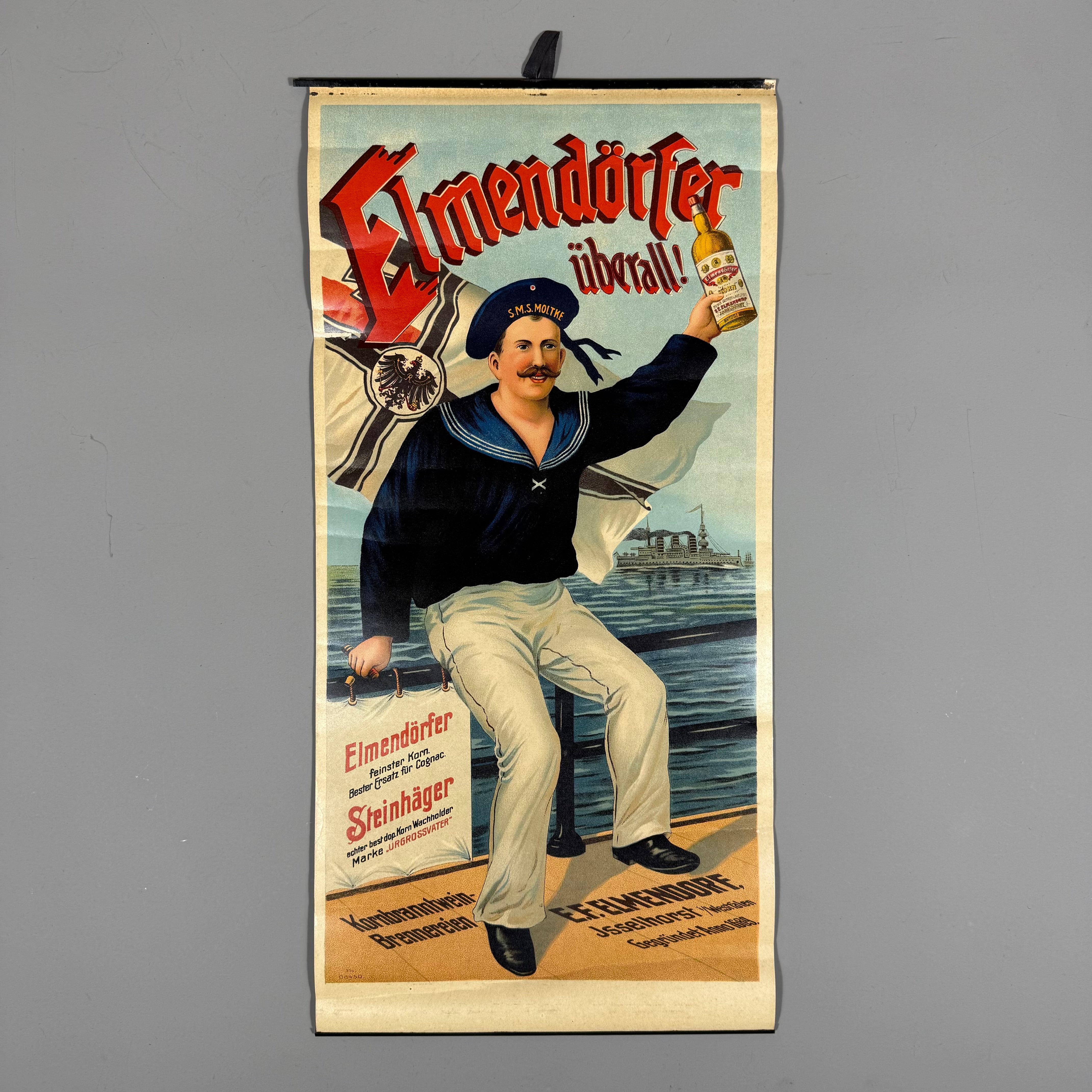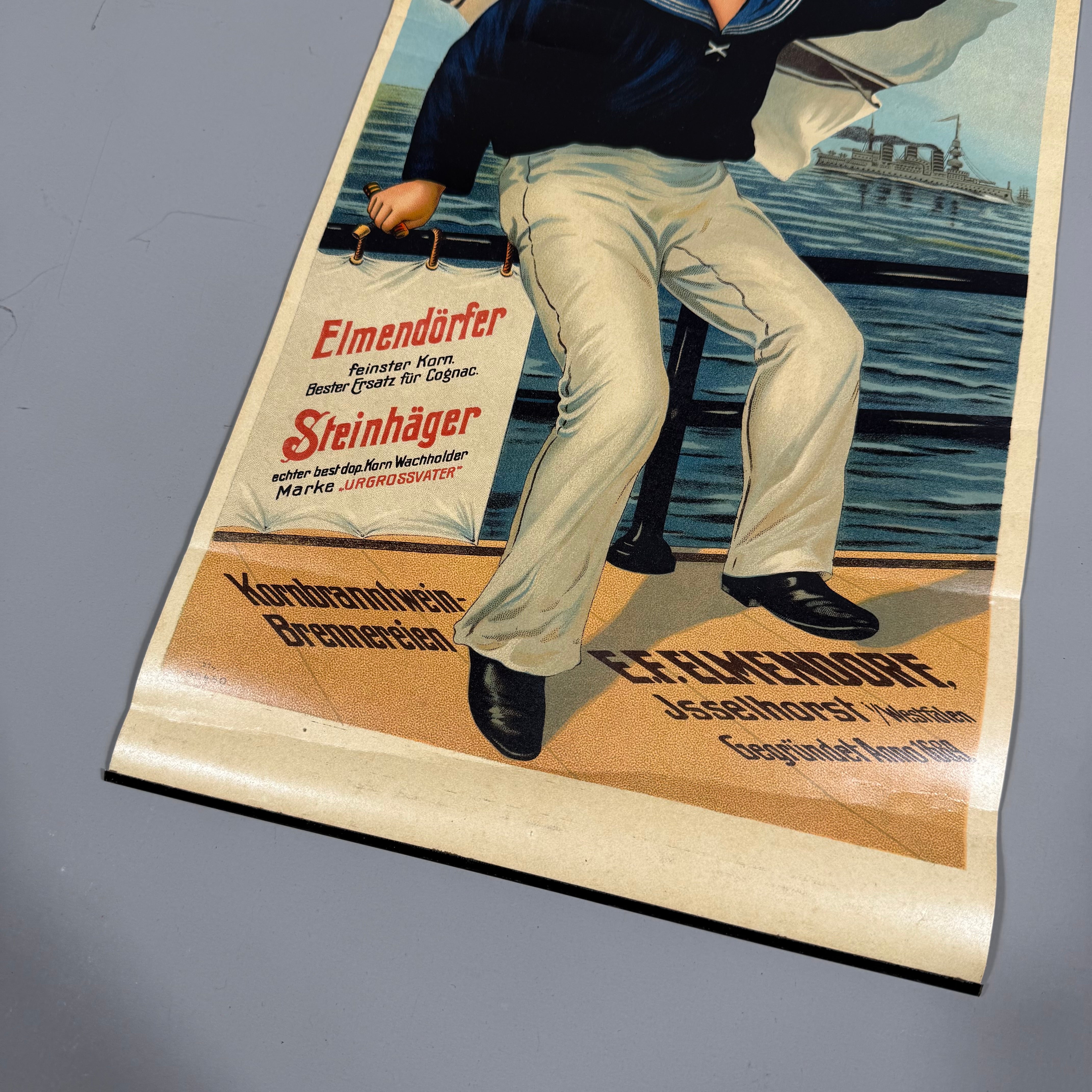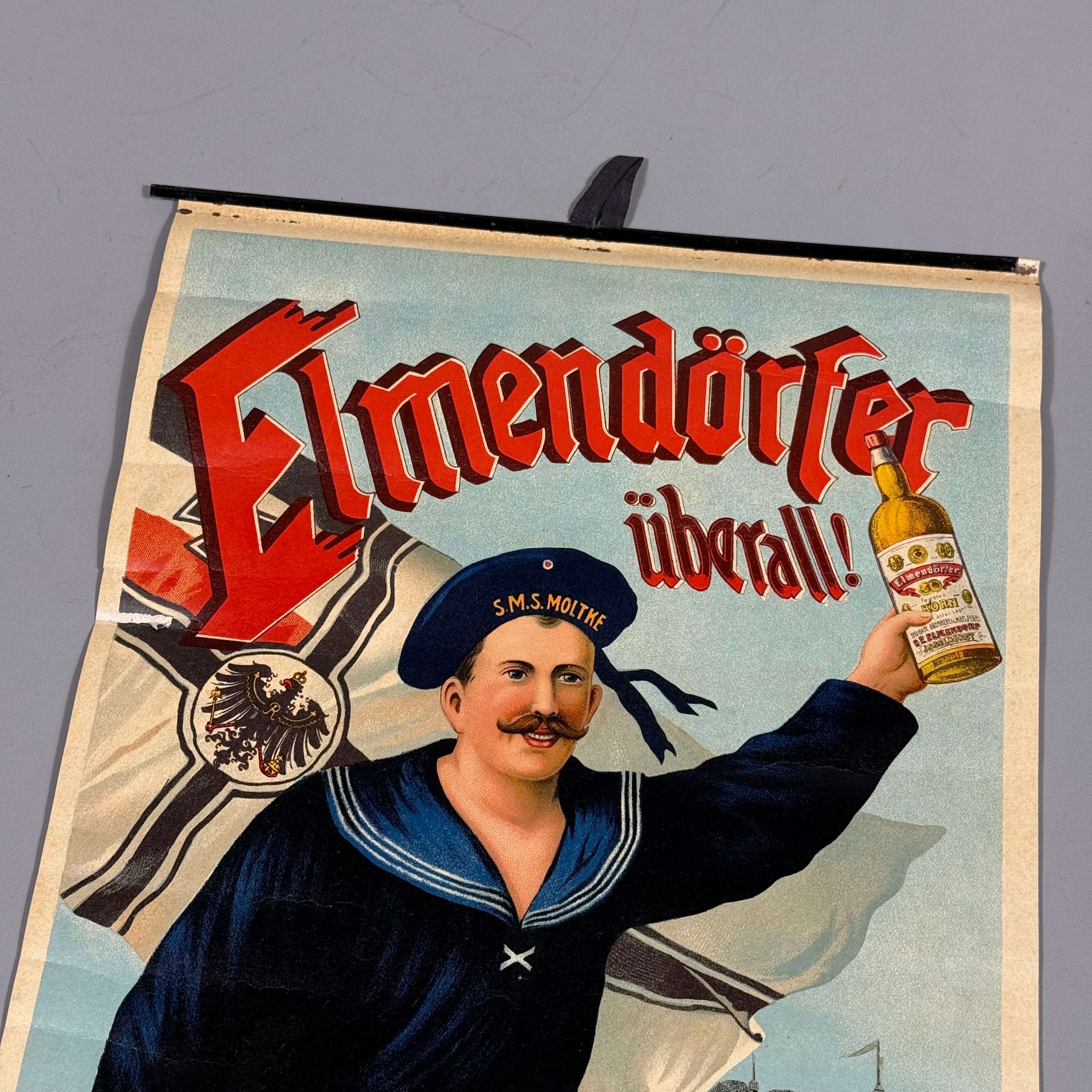 Original World War One Imperial German Kaiserliche Naval Advertisement Chromolithograph Poster Elmendörfer Überall!