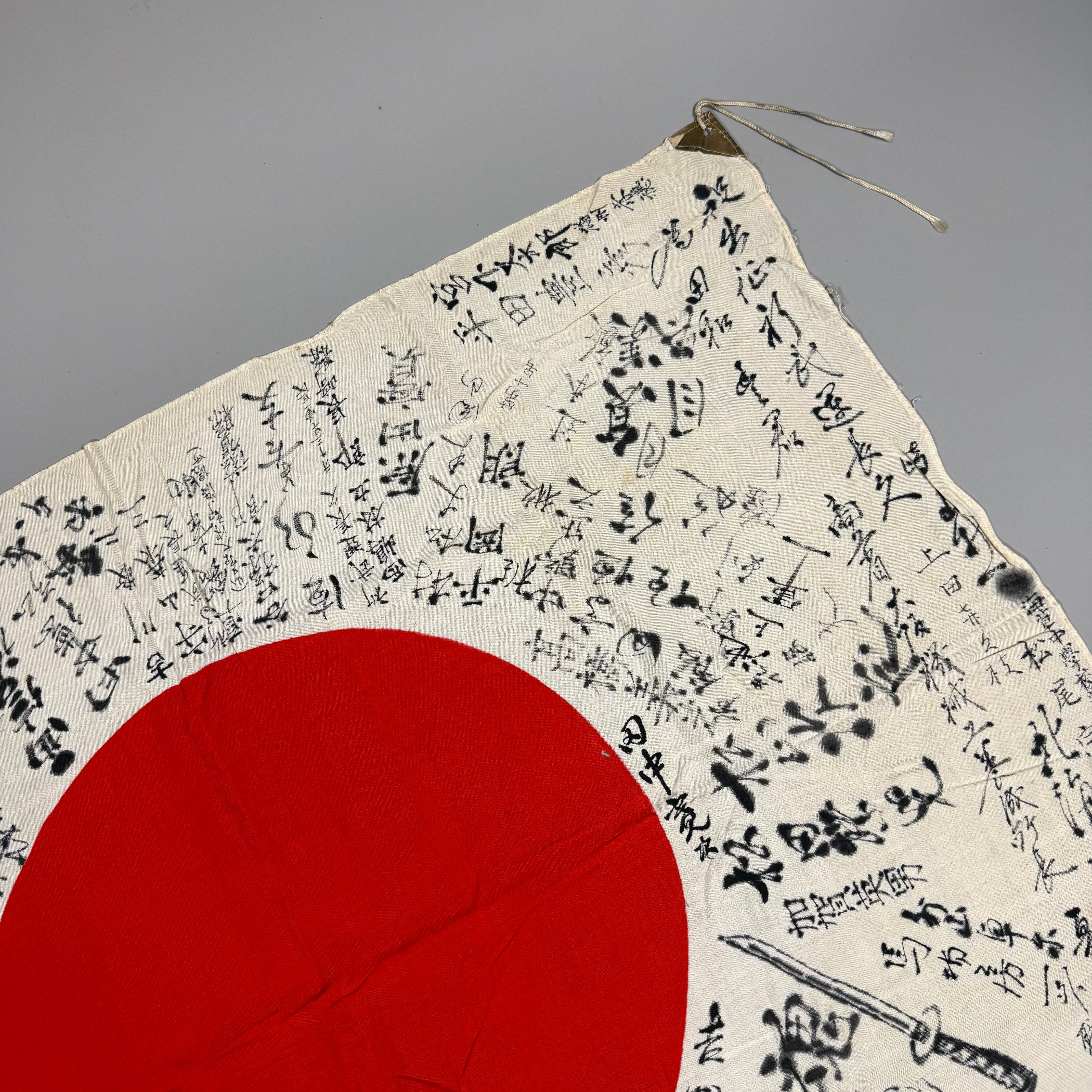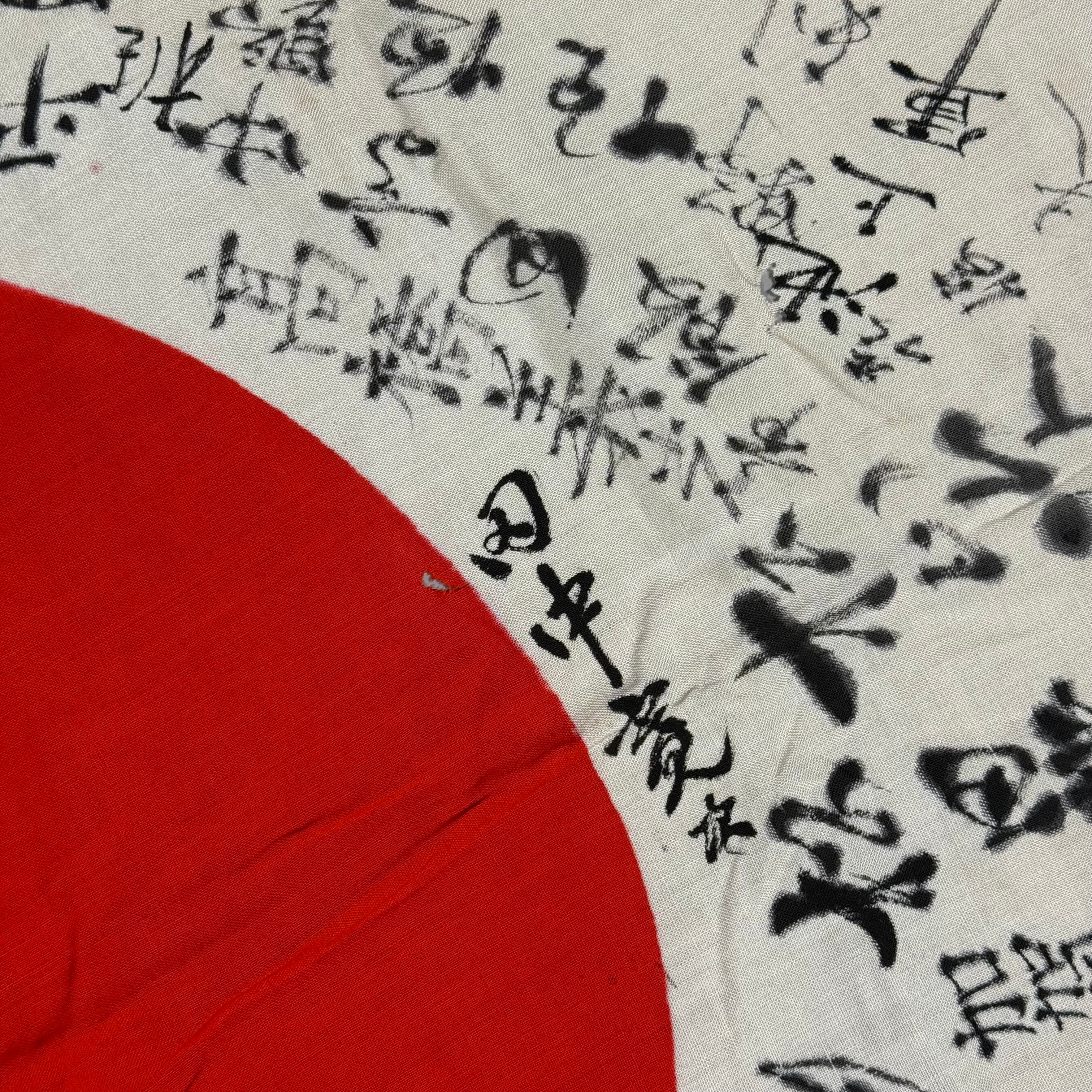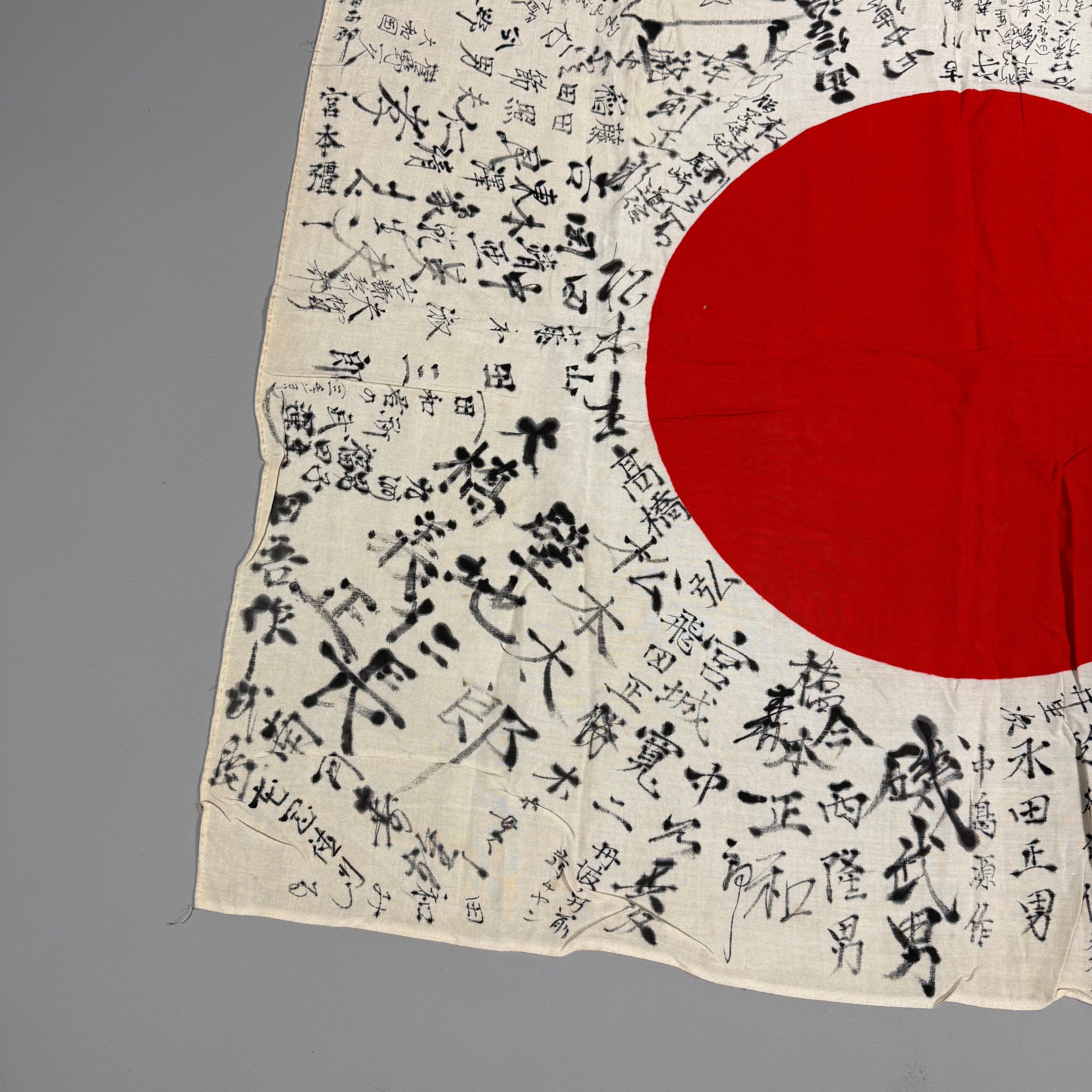 The origin of the tradition of flag inscriptions is disputed, with discussion over when it originated. Although some suggest that signed flags were added to a soldier's belongings during the First Sino-Japanese War (1894-1895), along with a "thousand stitch belt" (senninbari), good luck flags prior to the Manchurian Incident (1931) are uncommon. It is generally accepted that most Hinomaru Yosegaki seen today are from the time just before or during the Second Sino-Japanese War (1937-1945).